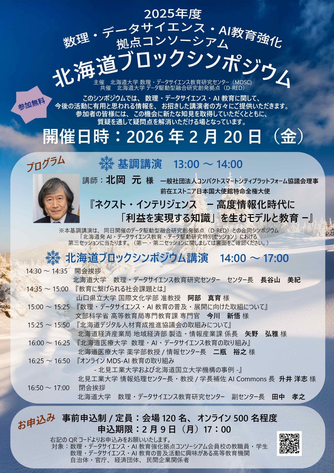 2月20日(金) 数理・データサイエンス・AI教育強化拠点コンソーシアム 「北海道ブロックシンポジウム」を開催いたします。